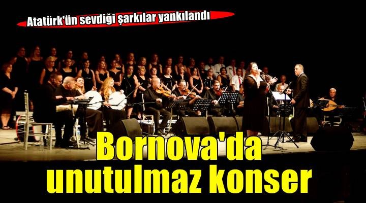 Şef Sami Büyüköztekir yönetimindeki koro, “Kırmızı Gülün Alı Var” ile başlayan konserde, “Fikrimin İnce Gülü”nden “Hoş Gelişler Ola”ya, “Memleketim”den “Şimdi Uzaklardasın”a kadar 20 eseri başarıyla seslendirdi. Hem koro hem de solistler performanslarıyla büyük beğeni toplarken, Bornovalılar da bu coşkulu anlara eşlik etti.