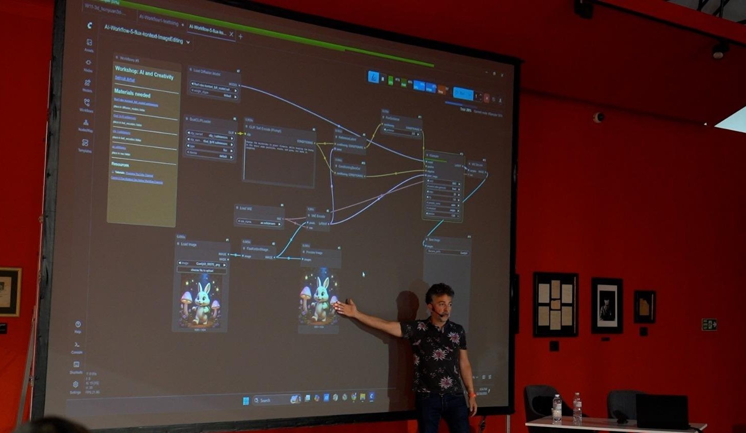 Yazar ve sanatçı Prof. Dr. Selçuk Artut, “Yapay Zeka ve Yaratıcılık: Yapay Zeka Araçlarıyla Uygulamalı Görüntü Oluşturma” atölyesini gerçekleştirdi. Uygulamalı atölyede, yaratıcı görüntü oluşturma için hızlı mühendislik teknikleri, ComfyUI arayüzünün ve iş akışı mantığının temelleri katılımcılara aktarıldı.
