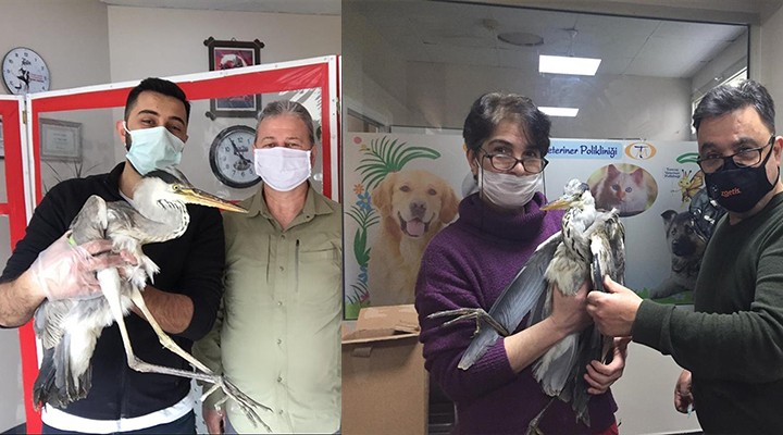Doğada yaralı bulunan gri balıkçıl, ilçede veterinerlik yapan Hakan Erdoğan'a getirildi.