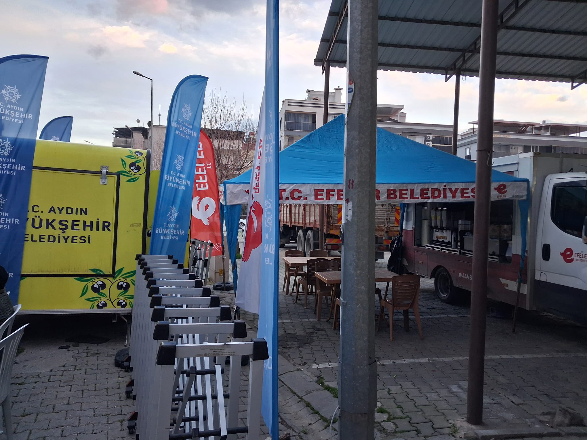 Alanda çekilen fotoğraflar, Efeler Belediyesi’nin ikram aracının çevresinin Büyükşehir Belediyesi’ne ait araçlar ve bariyerlerle kapatıldığını açık şekilde ortaya koydu.