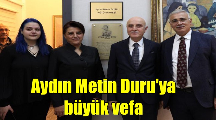"Aydın Metin Bey bizimle 2018'de Başkanlık Müşaviri olarak çalışmaya başladı. Kendisine bir kütüphane kurmamız gerektiğini söyledim. Kendisi de bu işi üstlendi, sağ olsun ve güzel bir kütüphane ortaya çıktı. Kütüphanenin bu hale gelmesinde elbette Aydın Metin Duru'nun büyük katkısı var. Hatta buranın kurucularından olduğunu da söyleyebilirim. Kendisi 13 Ağustos 2022'de vefat ettiğinde kurulumuz kütüphanenin ismini Aydın Metin Duru Kütüphanesi olarak değiştirdi. Bu şekilde ona vefamızı gösteririz diye düşündük. Önemli hizmetlerde bulundu. Yakın çalışma arkadaşımızdı. İsmini bu şekilde kütüphanede yaşatacağız. Allah mekanını cennet etsin."