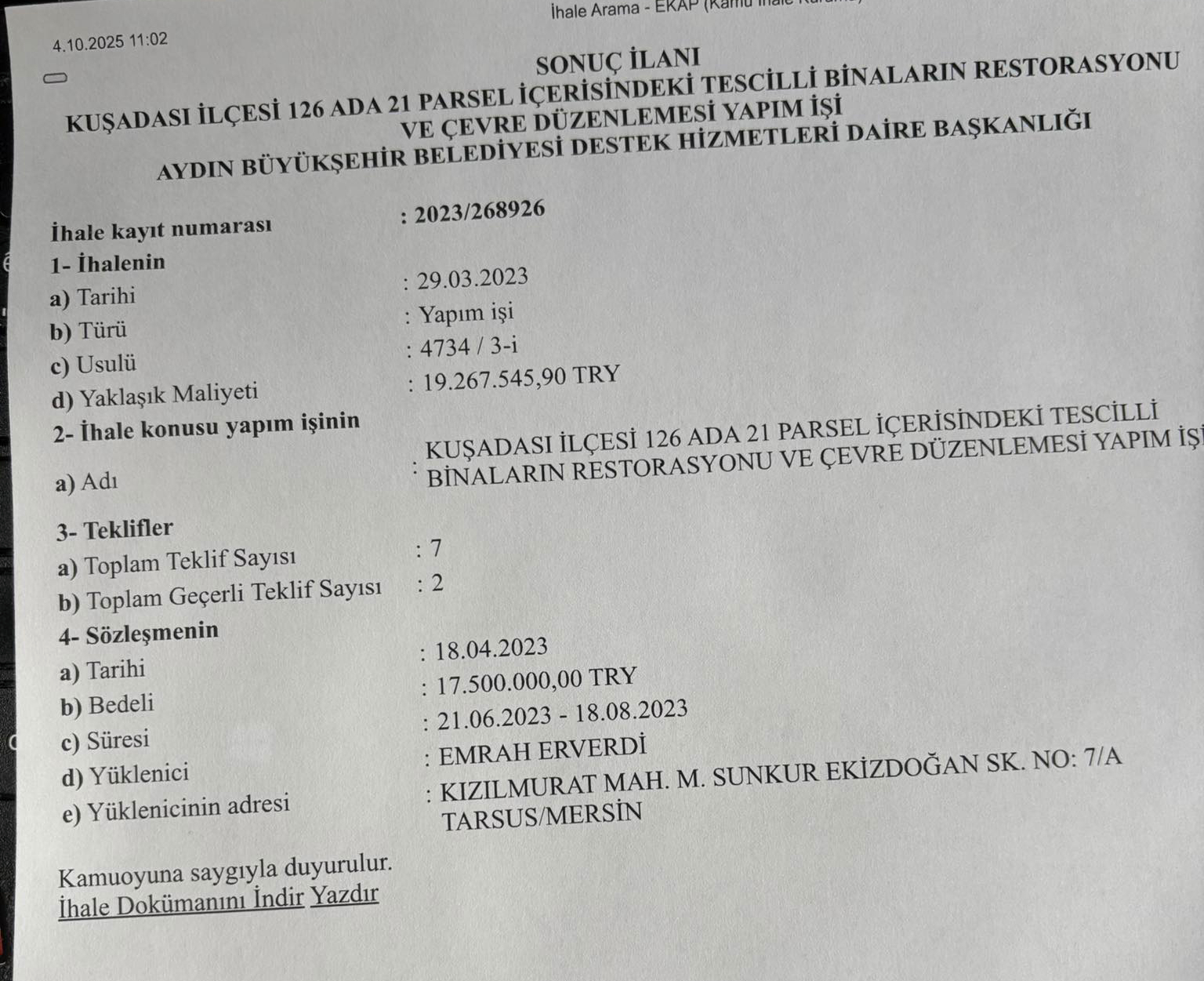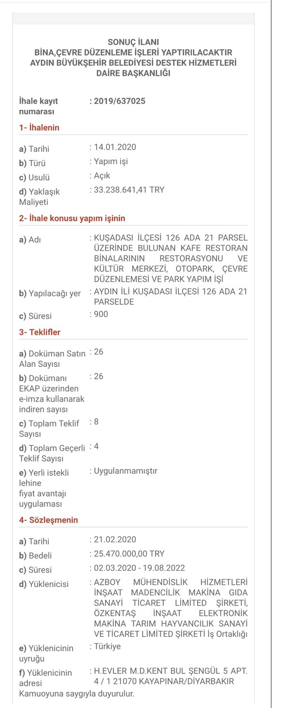 25 Milyon 470 Bin TL+ KDV bedelle yapılması gereken bu yapım işi için 42 Milyon 970 Bin TL+ KDV ödenmesi karşısında bunun hesabını sormak olaydan haberdar olan sorumluluk sahibi her vatandaşın görevidir dedik ve Aydın C.Başsavcılığına 2025/5709 SDN İle SUÇ DUYURUMUZU yaptık…