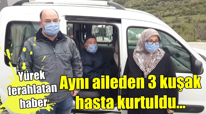 Ahmet ERTAN/SONKALEİZMİR-Çan Pandemi Hastanesi'nde aynı aileden 3 kişi bugün taburcu oldu. 87 yaşında ve demans hastası Mehmet Ertürk, 65 yaşındaki kızı hiper tansiyon ve koah hastası Zahide Uslu ve onun da 39 yaşındaki hiper tansiyon ve diyabet hastası oğlu Mehmet Uslu virüs ile mücadelesinden galip gelerek taburcu oldu.