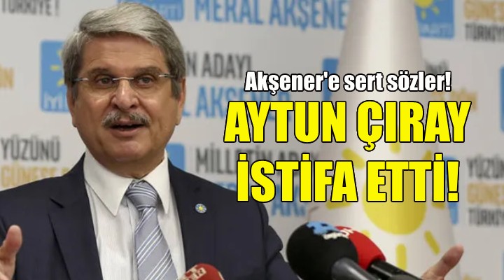 14 Mayıs'ta yapılacak seçim sürecinde yeni dönem milletvekilliği adaylığından çekilen İYİ Parti 27. dönem İzmir Milletvekili Aytun Çıray partisinden istifa etti. Çıray, "Kurucu Genel Sekreteri olarak yola çıktığım ve birçok görevde bulunduğum İYİ Parti’den istifa ediyorum" ifadelerini kullandı.