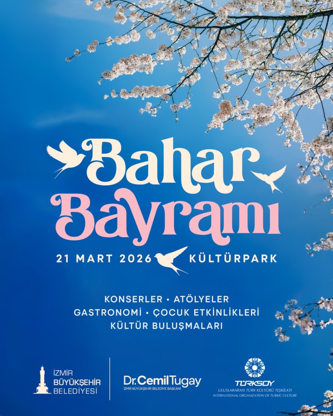 İzmir Büyükşehir Belediyesi ve Uluslararası Türk Kültürü Teşkilatı iş birliğiyle ilkbaharın gelişi Kültürpark’ta kutlanacak. 21 Mart’ta düzenlenecek Bahar Bayramı, birbirinden renkli etkinliklere sahne olacak. Ateşten atlama ritüelinden konserlere, sergilerden atölyelere kadar pek çok etkinlik İzmirlilerle buluşacak. Bahar Bayramı kapsamında ebru sanatı ve yumurta boyama gibi çocuklara yönelik etkinliklerin yanı sıra sergiler, Türk dünyası lezzetlerinin yer alacağı gastronomi alanları, ünlü sanatçıların konserleri ile dans ve müzik gösterileri düzenlenecek.