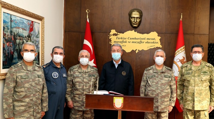 Milli Savunma Bakanı Hulusi Akar ve Türk Silahlı Kuvvetleri (TSK) komuta kademesi, İzmir Valiliğini ziyaret etti. Akar, beraberindeki Genelkurmay Başkanı Orgeneral Yaşar Güler, Kara Kuvvetleri Komutanı Orgeneral Ümit Dündar, Deniz Kuvvetleri Komutanı Oramiral Adnan Özbal ve Hava Kuvvetleri Komutanı Orgeneral Hasan Küçükakyüz ile İzmir'deki birliklerde gerçekleştirdiği inceleme ve denetlemelerine devam ediyor. Akar ve TSK komuta kademesi, İzmir Valiliğine de ziyarette bulundu. Akar ve komutanlar, Vali Yavuz Selim Köşger ile bir araya geldi.