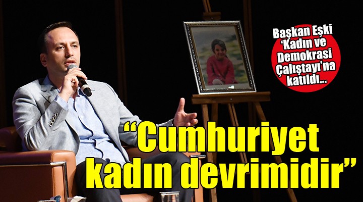 Konuşmasında Cumhuriyetin, kadının özgürleşmesiyle doğrudan bağlantılı olduğunun altını çizen Eşki, "Ben kendimi Kemalist ve Cumhuriyetçi olarak tanımlıyorum. Benim bulunduğum fikir dünyasında Cumhuriyet başlı başına bir kadın evrimi. Kadınlar ne kadar özgürleşirse Cumhuriyet o kadar ileriye gider. Cumhuriyetin başarılı olup olmayışı ya da hangi aşamaya geldiğinin göstergesi, kadınların aldığı rol ve yönetimde ne kadar söz sahibi olduğudur" dedi.