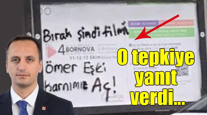 SONKALEİZMİR-Bornova Belediyesi tarafından 11-13 Ekim 2024 tarihleri arasında düzenlenecek Bornova Kısa Film Günleri için hazırlanan reklam afişinin yer aldığı panonun üzerine "Bırak şimdi filmi Ömer Eşki karnımız aç" yazısı yazıldı.