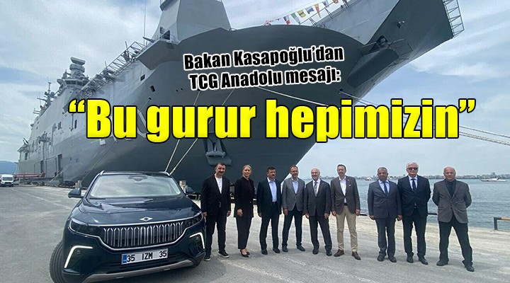 Gençlik ve Spor Bakanı Muharrem Kasapoğlu, AK Parti Genel Başkan Yardımcısı ve İzmir Milletvekili Hamza Dağ, İzmir Valisi Yavuz Selim Köşger, AK Parti İzmir milletvekilleri Ceyda Bölünmez Çankırı ve Mahmut Atilla Kaya ve AK Parti İzmir İl Başkanı Bilal Saygılı ile birlikte bu sabah İzmir Alsancak Limanı'na yanaşan dünyanın ilk SİHA gemisi TCG Anadolu'yu ziyaret etti. Deniz kuvvetleri amirlerinden bilgi alarak gemiyi gezdikten sonra açıklama yapan Bakan Kasapoğlu, “Alsancak Limanı'nda bu şaheser ayrı bir gururla tüm dünyaya mesaj veriyor. Bu gurur, hepimizin gururu. Türkiye iddiası olan, hayallerini gerçekleştiren bir ülke. Bugün çok farklı bir mutluluk içerisindeyiz. Çok özel bir gururu yaşıyoruz. Bu eser, emeğin, alın terinin, inancın ürünü. Bugünlerimizin, yarınlarımızın ne kadar güçlü olacağının sembolü. TCG Anadolu dünya başkenti İstanbul'daydı. Oradan yola çıktı. Çanakkale Şehitliğimizi selamladı ve şimdi güzel İzmir'imizde. İzmir Kuvayımilliye şehri. Düşmana ilk direnişin sembolü İzmir. Sayın Cumhurbaşkanımız, 'Havada, denizde, karada, yerin altında, uzayda. Nerede olmamız gerekirse oradayız' diyor. Bunun en güçlü sembolü milli savaş gemimiz, bugün İzmir'e geldi. Hemen yanı başında Togg'umuz var. SİHA'larımız, Kızılelma'mız bu millet için. Kimse bizi hayallerimizden vazgeçiremeyecek. İlk anlardan itibaren yoğun bir teveccüh var. Manisa'dan, Aydın'dan her yerden ziyaretçiler geliyor" ifadelerini kullandı.
