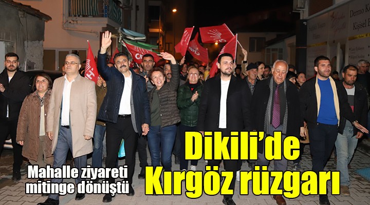 Mitinge dönüşen ev ziyareti öncesinde CHP Seçim Koordinasyon Merkezi’nde meşaleler, şarkılar ve türküler ile karşılanan Başkan Kırgöz hemşehrilerinin coşkusuna ortak oldu. Coşkulu kalabalık eşliğinde CHP Dikili İlçe Başkanı Emre Kırlı, ilçe örgütü, Belediye Meclis Üyesi Adayları ile birlikte Salimbey Mahallesi’ne yürüyen Başkan Kırgöz’e çok sayıda vatandaş balkonlardan alkışlarla destek verdi.
