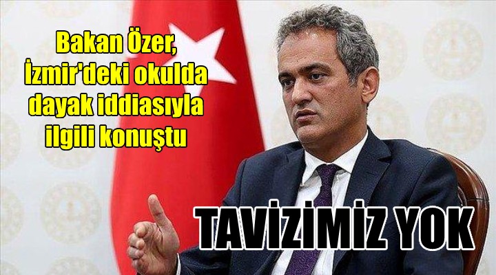 Bakan Özer, Aksaray'da matematik öğretmeni Ali Rıza Y.'nin öğrencisi T.K.'yi darbettiği olayı da hatırlatarak, İzmir'in Buca ilçesi Efeler Mahallesi'ndeki bir ilkokulda meydana geldiği iddia edilen olaya ilişkin "Bizim okullarımızda öğretmenin öğrenciye, öğrencinin öğretmene, öğrencinin öğrenciye, öğretmenin öğretmene uyguladığı zorbalık ve şiddete sıfır tolerans gösteriyoruz. Tüm süreçleri takip ediyoruz. Sadece Aksaray değil İzmir'deki olayda da süreçleri takip ediyoruz. Herkes için, çocuklarımız ve öğretmenlerimiz için eğitim kurumlarını güvenli hale getirmekle ilgili en ufak bir tavizimiz yoktur. Sonuna kadar devam edeceğiz" diye konuştu.