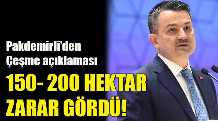 Çeşme Ildır Mahallesi'nde çıkan, otluk ve makilik alanda yayılan yangın bölgesindeki söndürme çalışmalarını havadan ve karadan inceleyen Tarım ve Orman Bakanı Bekir Pakdemirli, yangına ilişkin son bilgileri basın mensuplarıyla paylaştı. Rüzgarın hızının saatte 53 kilometreye kadar çıktığını, nemin yüzde 50 seviyesinde olduğunu belirten Pakdemirli, yangına 86 arazöz, 9 dozer, 344 personelle müdahale edildiğini, gün doğumundan itibaren de 2 uçak ve 20 helikopterin çalışmalara katıldığını bildirdi.