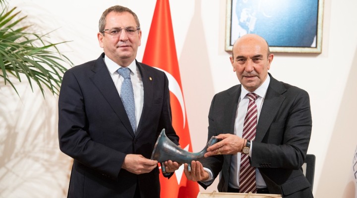 Ayvalık Belediye Başkanı Mesut Ergin, İzmir Büyükşehir Belediye Başkanı Tunç Soyer’i ziyaret etti. Ayvalık ve İzmir arasındaki işbirliklerinin gündeme geldiği buluşmaya İzmir Büyükşehir Belediye Başkan Vekili Mustafa Özuslu, CHP Ayvalık İlçe Başkanı Hüseyin Şalmanlı ve Ayvalık Belediyesi CHP’li meclis üyeleri de katıldı.