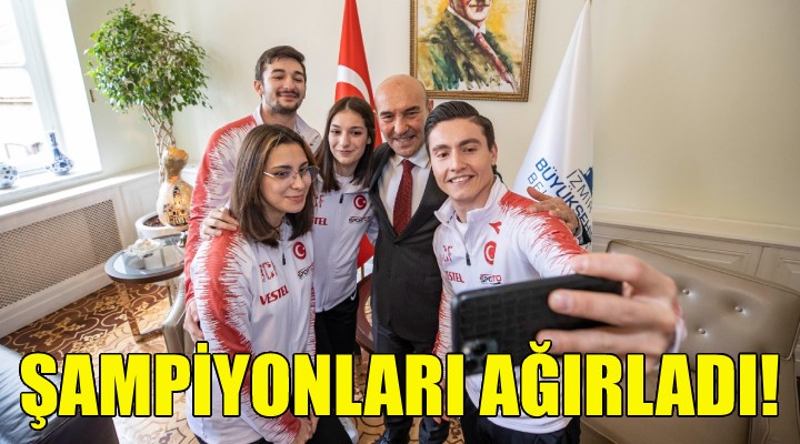 Bakü'de düzenlenen Trampolin Cimnastik Dünya Kupası'nda Türkiye adına ilk kez Dünya şampiyonluğu elden eden Sena Elçin Karakaş ve Sıla Karakuş ile yarışmada derece elde eden Hüseyin Engin Yontucu ve Gürkan Mutlu, İzmir Büyükşehir Belediye Başkanı Tunç Soyer’i makamında ziyaret etti. Ziyarette İzmir Büyükşehir Belediyesi Gençlik ve Spor Hizmetleri Dairesi Başkanı Hakan Orhunbilge ve sporcuların antrenörleri de yer aldı.