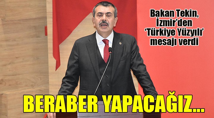 İzmir Eğitim Yöneticileri Toplantısı'nda katılımcılara seslenen Tekin, "Bundan tam 101 yıl önce içinde bulunduğumuz bina, Türkiye'nin Kurtuluş Savaşı'nın hemen sonrasında ekonomik bağımsızlığımızın elde edilmesine ilişkin kararların alındığı bir yer. El işçiliğinden fabrikalaşmaya geçişi, ekonomik bağımsızlığı ve ekonomik kararların alındığı bir binadayız. Bu yüzyıl boyunca bu anlamda gerçekten devasa adımlar atıldı. Ve şimdi aynı binada önümüzdeki yüzyıla ilişkin Türkiye'nin bu kez de önümüzdeki yılı domine edecek bir ülke olması için kararlar alacağız. İstişareler yapacağız. Bunu önemli buluyorum. Benden önce konuşan İl Milli Eğitim Müdürü Yahşi Bey'in söylediği 15 Temmuz süreci de aslında Gazi Mustafa Kemal'in bu binada başlattığı ve yürüttüğü mücadelenin doğal bir sonucu. Siz o günü çok iyi hatırlayacaksınız. Türkiye'nin bir uydu devleti olması için yabancı güçlerle iş birliği yapan, Türkiye'yi bu anlamda başka ülkelerin bir piyonu haline getirmeye çaba sarf eden bir grup, bu ülkede siyasi iktidarı ve toplumsal iktidarı ele geçirmeye çalıştı. 15 Temmuz gecesi ülkece beraber bir destan yazıldı. Tıpkı Kurtuluş Savaşı'nda yaptığımız gibi. İnşallah önümüzdeki yüzyılı da hep beraber inşa edeceğiz. Bakın şimdiye kadar ki süreci, öğretmenler üzerinden inşa ettik. Bundan sonraki süreci de öğretmenlerle beraber inşa edeceğiz" dedi.