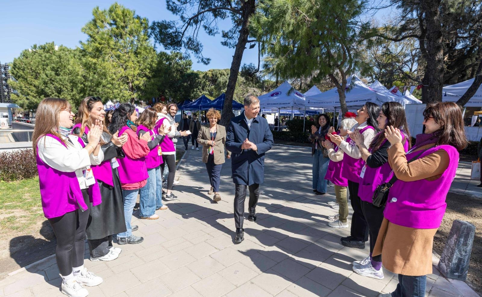 İzmir Büyükşehir Belediyesi, 8 Mart Dünya Emekçi Kadınlar Günü’nü “Aramızda Eşitlik Var” temasıyla üç gün süren etkinliklerle karşıladı. Kültürpark’tan ilçelere uzanan etkinliklerde kadın emeği ve dayanışma ön plana çıktı. İzmir Büyükşehir Belediye Başkanı Dr. Cemil Tugay, 8 Mart Dünya Emekçi Kadınlar Günü'nde Kültürpark'taki stantları ziyaret ederek üretici kadınlarla buluştu. Başkan Tugay, sivil toplum kuruluşları, dernekler ve vakıfların temsilcileriyle sohbet etti, çocuklarla fotoğraf çektirdi ve gençlerin taleplerini dinleyerek ihtiyaçları not aldı. Etkinlikte binlerce İzmirli, kadınların gücünü kutlamak için bir araya geldi.
