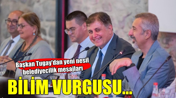 Bilim Kurulu’nun çalışması ve yol haritası hakkında konuşan Başkan Dr. Cemil Tugay, “Stratejik Plan çalışması yaparak önümüzdeki yılların yol haritasını oluşturuyoruz. Siz değerli bilim insanlarıyla bu nedenle bir aradayız. Biraz farklı bir şey deniyoruz. Bunu daha önce aslında Karşıyaka’da başlattık. Aynı konuya farklı bakış açılarıyla yaklaşan insanların kentin sorunlarına bir arada çözümler geliştirmesine ihtiyacımız var. Bu çalışmaya altyapı hazırlamak, ihtiyaç duyulan her konuda belediyenin imkanlarını sizlere sunmak için ben kendi irademi ortaya koyuyorum. Sizin ve birlikte yapmak istediklerinizle ilgili ne gerekiyorsa sağlayacağız Veri toplamak, bu verileri analiz etmek, katılımcı atölye çalışmaları düzenlemek gibi pratik sonuçlara ihtiyacımız var. Sizlerin bizlere anlattıklarının pratiğe dönmesi için bürokrat arkadaşlarımız devrede olacak” diye konuştu.