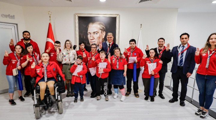 İzcilerle tek tek sohbet eden Başkan Tugay, ziyaret sonunda onlara boyama ve satranç seti hediye etti. Down sendromlu izciler, Başkan Tugay’la hatıra fotoğrafı çektirdi.