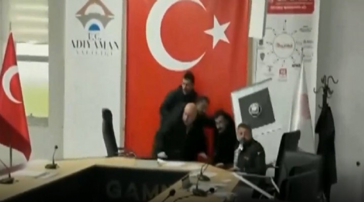 Karaismailoğlu’nun önce masanın altında kendisini güvenceye aldığı ve sonrasında hızlıca binayı terk ettiği görüldü.