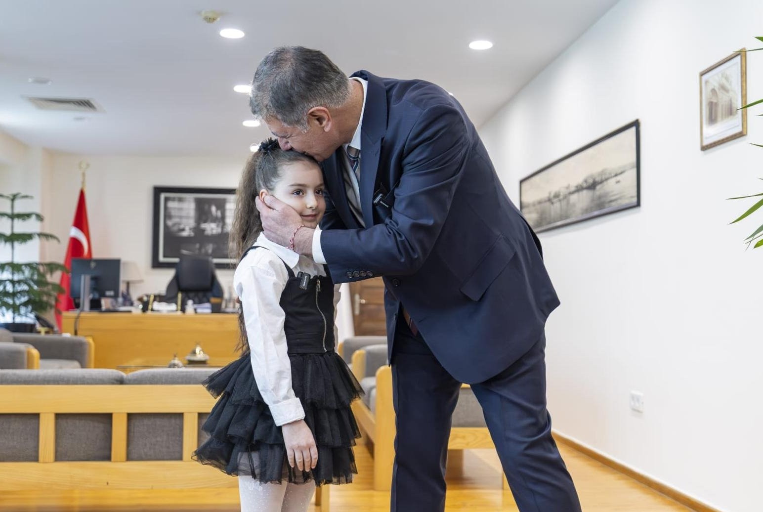 Ziyarette, İstiklal Marşı’nın 10 kıtasını ezbere okuyan minik Meryem Esila Şen’i tebrik eden Başkan Tugay, “Okulla aran nasıl? Büyüyünce ne olmak istiyorsun?” sorularını yöneltti. Şen, okulu, okumayı ve arkadaşlarını çok sevdiğini, büyüyünce hakim olmak istediğini söyledi. Tugay, “Zor bir iş, adaletli olmak gerekiyor. Suçlulara ceza mı vermek istiyorsun?” diye sorunca Şen “Evet” cevabını verdi. Tugay da gülerek, “Biz de onlara çok kızıyoruz” dedi.