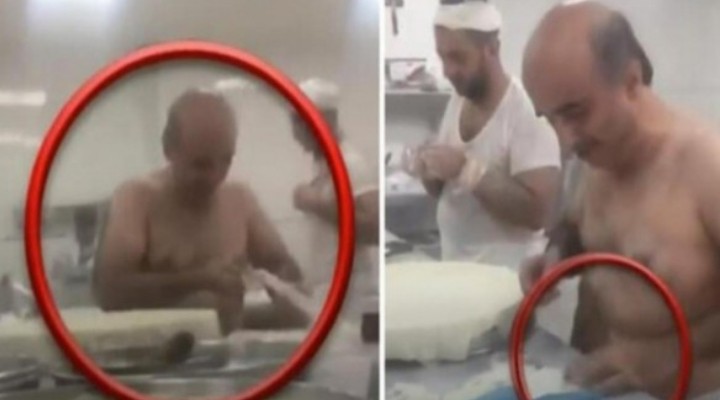 Yufkaları tepsiye sermeden önceden ağzına götürdü. O baklavaları yiyecek olanları unuttular, görüntüleri sosyal medyada paylaştılar. Görüntüler büyük tepki topladı.