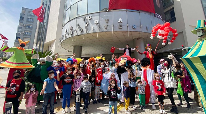 Pandemi nedeniyle uygulanan sokağa çıkma kısıtlaması Balçova’da 23 Nisan coşkusuna engel olamadı. Balçova Belediyesi masal kahramanlarından oluşan bando ve kortejle sokak sokak gezerek bayramı çocukların evlerine ulaştırdı. Kortejle birlikte yürüyen Başkan Fatma Çalkaya, sokakta olan çocuklarla fotoğraf çektirdi. Bayramı evde geçirecekleri için üzgün olan Balçovalı Çocuklar ise yapılan sürpriz karşısında balkonlarına çıkarak bayraklarıyla korteji selamladı.