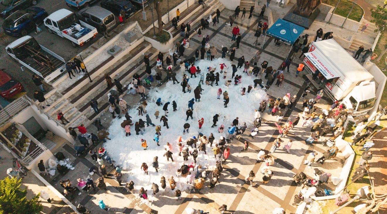 Balçova Belediyesi, İzmir’de nadir yaşanan kar sevincini çocuklarla buluşturmak amacıyla belediye binası önünde Kar Şenliği düzenledi. Etkinlik alanı kısa sürede dolarken, aileler ve çocuklar kar topu oynayarak doyasıya eğlendi.