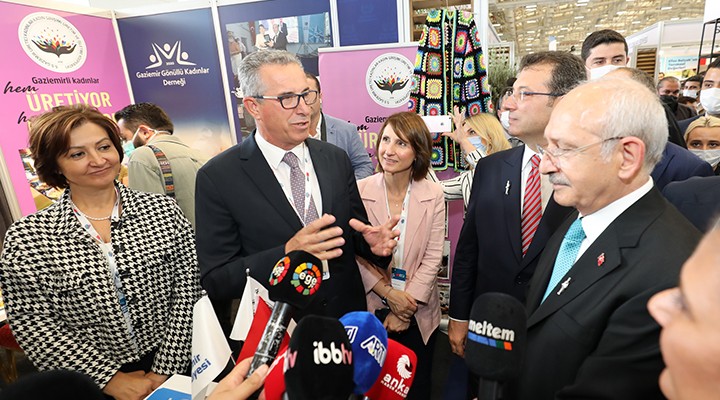 Gaziemir Belediye Başkanı Halil Arda, belediyenin standını ziyaret eden CHP Genel Başkanı Kemal Kılıçdaroğlu ve İstanbul Büyükşehir Belediye Başkanı Ekrem İmamoğlu’na projelerini anlattı. Başkan Arda, Kılıçdaroğlu ve İmamoğlu’na yaşama geçirdiği Porta Gaziemir, Sosyal Market projeleri ve ekonomik yönden dezavantajlı yurttaşlara destek vermek, kadın istihdamına katkı koymak amacıyla Gaziemir Gönüllü Kadınlar Derneği ve Gaziemir Üretici Kadınlar Kadın Girişimi Üretim ve İşletme Kooperatifi’yle birlikte yürütülen çalışmaları anlattı.