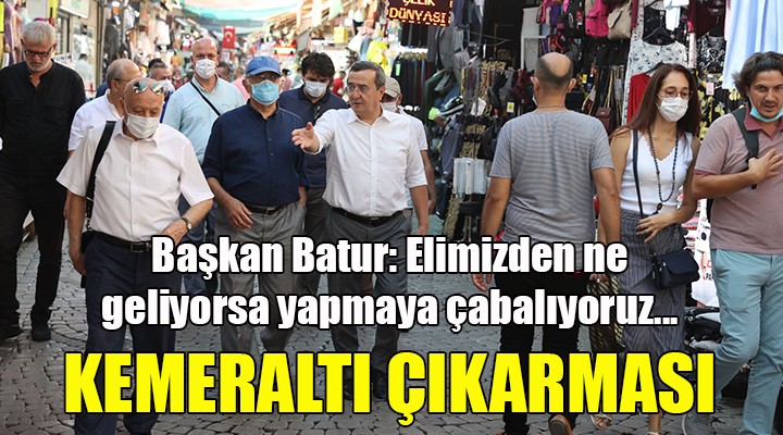 Esnafla sohbet ederek, sorunlarını dinleyen Başkan Batur, Kemeraltı bölgesinin İzmir için çok önemli bir değer olduğuna dikkat çekti. Kemeraltı’nın hem tarihi misyonunun korunması hem de gelişiminin sağlanması gerektiğine işaret eden Batur, “Kemeraltı’na nasıl daha da değer katarız diye çalışıyoruz. Kemeraltı’nın gelişmesi, esnafın daha iyi koşullarda çalışarak hızla kalkınması için elimizden ne geliyorsa yapmaya çabalıyoruz. İzmir Büyükşehir Belediyemiz de aynı anlayışla çalışmalarını yürütüyor” diye konuştu.