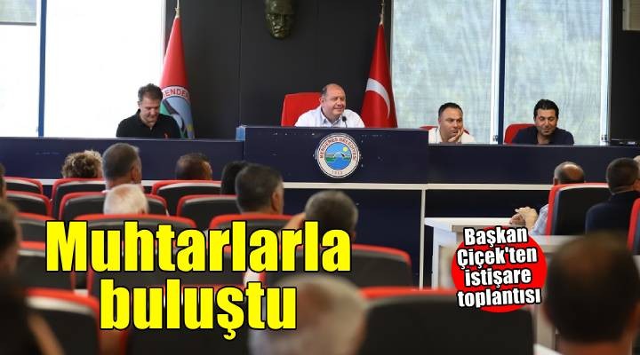 Menderes Belediye Başkanı İlkay Çiçek, muhtarlar ile toplantıda bir araya geldi. Bugüne kadar yapılanların değerlendirildiği istişare toplantısında hizmetler masaya yatırıldı. Muhtarlar söz alarak mahallelerinde var olan eksikleri ifade etti. Başkan Çiçek, ihtiyaç ve talepleri teker teker not etti. Bundan sonraki süreçte yapılacak olan hizmetler ve kazandırılacak projeler hakkında da bilgi veren İlkay Çiçek, muhtarlar ile fikir alışverişinde bulundu.