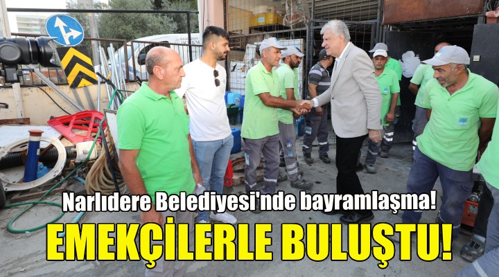 Narlıdere Belediye Başkanı Ali Engin, Kurban Bayramı öncesinde belediye personeli ile bayramlaştı. Sabahın erken saatlerinde şantiye tesislerinde çalışan işçilerle hemen ardından ise Narlıdere AKM’de görevli belediye personeli ile bayramlaşan Başkan Engin, çalışma arkadaşlarının bayramını tek tek kutladı. Narlıdere’de geleneksel hale gelen bayramlaşma törenine başkan yardımcıları, Belediye-İş Sendikası İzmir 2 No'lu Şube Başkan Yardımcısı Turan Dündar, meclis üyeleri ve muhtarlar da katıldı.