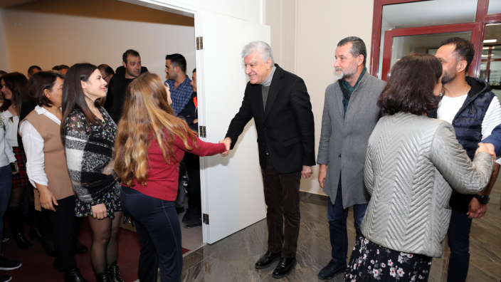 İkinci buluşma ise Belediye hizmet binasında gerçekleşti. Başkan Engin, Belediye Meclis Salonu’nda çalışanlarla bir araya gelerek yeni yıllarını kutladı. Yeni yılda da daha güzel bir Narlıdere için el birliğiyle çalışmaya devam edeceklerini ifade eden Engin, “2022’de de pandeminin etkilerini yaşadık. Hep birlikte güçlü bir dayanışma sergiledik. Gördük ki sorunları kutuplaşma ve karşıtlıkla çözemeyiz. Bilime, araştırmaya daha çok önem vermeliyiz. Kadınların çalışma ve sosyal hayata katılımını desteklemeliyiz. Çevreyi, gıdayı, toprağımızı korumalıyız. Cumhuriyetimizin ikinci yüzyılında mesleğini iyi yapan insanlara daha çok ihtiyacımız var. En iyi kaynağımız çocuklarımız. Genç nesillerle kavgadan gürültüden uzak yeni ufuklara açılmamız lazım” dedi. Başkan Engin, “Vatandaşlarımız bizi 5 yıllığına göreve getirdi ve yaklaşık 4 yıl geride kaldı. Ülkemiz, şehrimiz ve Narlıdere’miz için bir şeyler yapma motivasyonuyla çalışan bütün mesai arkadaşlarıma teşekkür ediyorum. Cumhuriyetimizin 100.yılının bize daha güzel günler getireceğine inanıyorum. Hayata geçirdiğimiz her güzel işte imzası olan kıymetli personelimizin yeni yılını kutluyorum” diye konuştu.