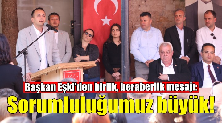 Törende yaptığı konuşmada, 31 Mart yerel seçimlerinde CHP’nin kazandığı başarının bir parçası olmaktan büyük bir gurur duyduğunu dile getiren Bornova Belediye Başkanı Ömer Eşki, CHP’yi en zor şartlarda dahi ayakta tutan parti üyelerine çabaları için teşekkür etti. Seçim sürecinde pek çok güçlük yaşadıklarını ancak 31 Mart akşamı oluşan kırmızı tablonun her şeyi unutturduğunu söyleyen Başkan Eşki, “Gerçekten bu ülkede gençlerin, benden biraz daha genç olan arkadaşlarımın umutsuz yaşadığı bir dönemdeydik. Genel Başkanımız Özgür Özel’in de dediği gibi üniversite mezunu olan her dört gençten üçü Türkiye’ye terk etmeyi kafaya koymuştu. Zihinde bavulları toplamış, gitmeyi düşünüyorlardı” dedi.