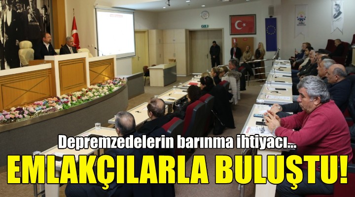 Çiğli Belediyesi’nin ev sahipliğinde düzenlenen toplantıya İzmir Emlak Komisyoncuları Odası Başkanı Mesut Güleroğlu ve emlak sektörü temsilcileri katılım gösterdi. Katılımcılara deprem bölgesinden edindiği veriler ve Çiğli Belediyesi’nin devam eden dayanışma çalışmaları hakkında bilgi veren Başkan Utku Gümrükçü, emlakçıların konaklama ihtiyacıyla ilgili önerilerini tek tek dinledi ve notlar aldı.