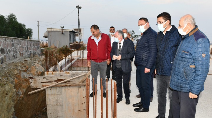 Harmandalı bölgesindeki incelemeler sırasında Harmandalı Cemevi’ni ziyaret eden Başkan Gümrükçü, devam eden Cemevi inşaatıyla ilgili bilgi aldı.