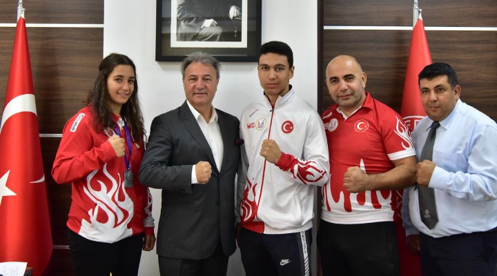 Elde ettikleri derecelerle Türkiye'nin gururu olan sporcular Sevim Ada ile Taylan Leyne, antrenörleri ve Türkiye Muaythai Federasyonu Ege Bölgesi Asbaşkanı Şakir Bayramoğlu ile birlikte Bornova Belediye Başkanı Dr. Mustafa İduğ'u, 29 Ekim Cumhuriyet Kupası'ndan hemen önce ziyaret etti. Başkan İduğ ziyarette, elde ettikleri başarıların mutluluğunu paylaşan sporcuları tebrik ederek, daha çok gencin aynı yoldan ilerleyebilmesi için imkanlar ölçüsünde her türlü desteği vereceklerini söyledi. Başkan İduğ, başarılı gençlerin antrenörlüklerini de yapan Muaythai İzmir İl Temsilcisi Murat Yılmaz ve İl Temsilci Yardımcısı Nuri Karaca'dan ihtiyaç duydukları desteklerle ilgili bir rapor hazırlamalarını istedi.