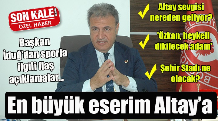 Altay'da daha önce yöneticilik yapan Başkan İduğ, siyah-beyazlı renklere olan sevgisini de şöyle açıkladı: "Futbolculuğumda Altay'da yetiştim, lisansım orada çıktı. Altınay diye bir kulüp vardır. Bizim dönemimizde Bornova'da bütün futbolcular oradan çıkmıştır. Yaşar Doğalçınar diye bir abimiz 12 yaşında bizi bir araya getirmişti. Okuldaki yetenekli öğrencileri toplayıp takımlar kurmuştu. Daha sonra teknik direktör Ömeragiç'le Altay'da piliçler dönemi başladı. Bizi takım olarak Altay'a aldılar. Bazı arkadaşlar profesyonel oldu. Bizler amatör ve genç takımlarda oynadık. Daha sonra ben Bornova ve Soma'ya gittim. Oralarda futbol oynadım. Futbolculuğum mahallede başlamıştı. Şimdi ne mahalle mektebi var ne mahallede top oynayanlar var. Şimdilerde bunu yapan Mehmet Özkan var. Aynı modeli o yapıyor. Müthiş heykeli dikilecek bir adam. Futbol ve Altay sevgim oralardan geliyor."