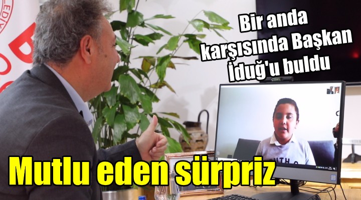 Bornova Belediye Başkanı Dr. Mustafa İduğ, 2 Nisan Dünya Otizm Farkındalık Günü’nde 12 yaşındaki otizmli öğrenci Sidar Yıldırım’a sürpriz yaptı. İduğ, Koronavirüs salgını nedeniyle okulların tatil edilmesinin ardından zamanını ailesi ile birlikte Atatürk Mahallesi’ndeki evinde geçiren Sidar ile skype üzerinden görüşme gerçekleştirdi. Bornova İsmet Sezgin Ortaokulu öğrencisi Sidar Yıldırım, Başkan İduğ’un sürpriziyle büyük mutluluk yaşadı. “Seni çok seviyorum başkanım” dediği İduğ ile karşılıklı sohbet eden Sidar, evde bol bol kitap okuduğunu ve bahçede futbol oynadığını anlattı. Birlikte futbol oynama ve kitap gönderme sözü verdiği Sidar’a Dijital Sınıf’ı da anlatan Başkan Mustafa İduğ, “Dijital Sınıf’tan mutlaka yararlan, derslerinden geri kalma” dedi.
