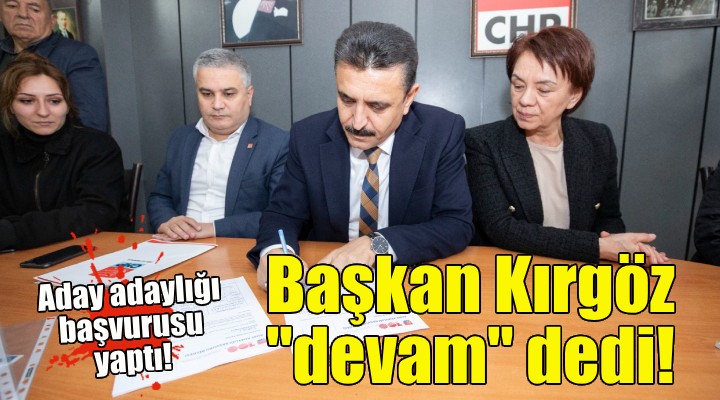 Eşi Nesrin Kırgöz, belediye meclis üyeleri ve çok sayıda parti üyesi ile birlikte CHP Dikili İlçe Başkanlığı’na giden Başkan Kırgöz, belediye başkanı aday adaylığı dosyasını İlçe Başkanı Emre Kırlı’ya teslim etti.