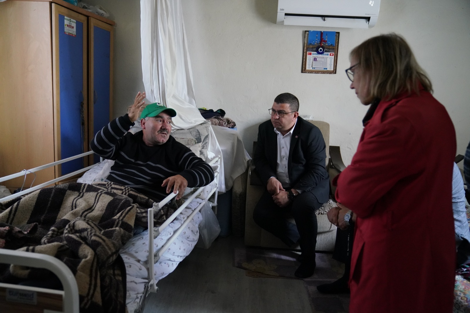 3 Aralık Dünya Engelliler Günü’nden, anlamlı bir ziyaret gerçekleştiren Tire Belediye Başkanı Hayati Okuroğlu, felç hastası olan yürüme engelli Murat Akbay’ı, Karateke Mahallesi’ndeki evinde ziyaret etti. Ziyarete Karatake Mahalle Muhtarı Erkan Tutkaç ve Tire Belediyesi Sosyal Yardım İşleri Müdürü Hatice Demetçi de katıldı.