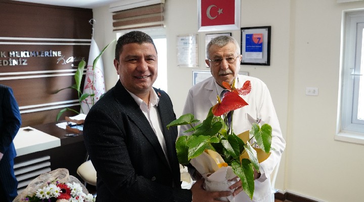 Tire Sağlıklı Hayat Merkezi’nde görev yapan hekimleri de ziyaret eden Başkan Okuroğlu, her birine çiçek takdim ederek Tıp Bayramlarını kutladı.