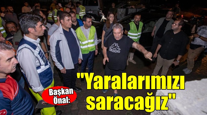 Öncelikli olarak vatandaşların güvenliğini sağlayıp zarar gören bölgelerin temizliğiyle çalışmalara başladıklarını belirten Bayraklı Belediye Başkanı İrfan Önal, "Yaz ayında beklemediğimiz bir yağış ve sel baskınlarıyla, maalesef çok üzücü durumlarla karşılaştık. Alsancak’ta iki yurttaşımız elektrik akımına kapıldıkları için hayatını kaybetti. Onlara Allah’tan rahmet diliyoruz, başımız sağ olsun. Bayraklı’da can kaybımız yok, ancak maddi hasarlarımız oldukça büyük. Kendi yaralarımızı bir an önce sarmak üzere İzmir Büyükşehir Belediye Başkanımız Cemil Tugay, müdürlerimiz ve muhtarlarımızla birlikte sel felaketinin yaşandığı ilk andan itibaren sahada çalışmalarımızı sürdürdük. Çok kısa sürede yaralarımızı saracağız. Umarım bir daha böyle doğal afetler yaşamayız. Sel felaketine karşı hazırlıklarımızı bugünden tezi yok elimizden geldiğince artıracağız. Tüm ekiplerimiz, felaketin ardından sel sularını tahliye etmek ve zarar gören yerlere müdahale etmek için aralıksız çalıştı. Felaketin neden olduğu hasarları gidermek için teyakkuzda olacağız. Bu zor günleri hep birlikte atlatacağız. Tüm vatandaşlarımıza geçmiş olsun" dedi.