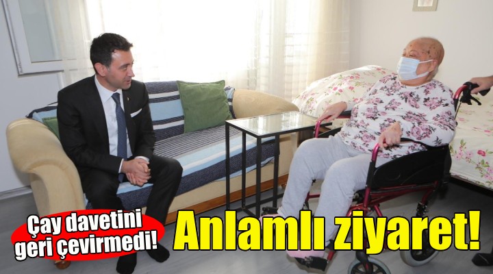 Bayraklı Belediyesinin hasta ve engelli nakil hizmetinden faydalanarak memnuniyetini sosyal medyadan oğlu aracılığıyla dile getiren Ziynet teyze Başkan Önal’ı çay içmeye davet etmişti. "Bazı kahramanlar pelerin giymez; zor günlerimizde bizlere yardımcı olan Bayraklı Belediyesi çalışanlarına teşekkür ederiz. Sayın Başkan İrfan Önal, annem sizi bir gün çay içmeye davet ediyor, bizzat teşekkür etmek için” mesajından sonra bu daveti geri çevirmeyen Önal, Ziynet Atlayan ve ailesine ev ziyaretinde bulundu. Duygulu anların yaşandığı etkinlikte Ziynet teyze engelli, yaşlı ve hastalara desteklerinden dolayı Başkan Önal ve ekibine teşekkür etti.