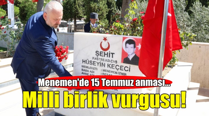 Milletimizin vatan mücadelesi için göğsünü siper ettiğini ifade eden Menemen Belediye Başkanı Aydın Pehlivan ise, “İhanet gecesinde TBMM bombalandı. Gölbaşı Özel Harekât Merkezi bombalandı. İstanbul ve Ankara’da darbecilerin üstüne yürüyerek vatan uğruna bedenlerini siper eden vatandaşlarımız haince katledildi. Eli kanlı FETÖ militanlarının menfur darbe girişimi; Cumhurbaşkanımız Sayın Recep Tayyip Erdoğan’ın dirayeti, hükümetimizin kararlı tutumu ve aziz milletimizin destansı direnişiyle bertaraf edildi. Gece boyunca Türkiye’nin dört bir yanında camilerimizden okunan selalarda birlikte vatandaşlarımız ellerinde Türk bayraklarıyla sokaklara çıkmış, meydanları doldurmuş ve ‘Darbeye hayır!’ demiştir. Milletimiz, ülkemize yöneltilen saldırılara karşı tek vücut olduğunu, Ulu Önderimiz Mustafa Kemal Atatürk’ün liderliğinde Kurtuluş Savaşı’mızda sergilediği gibi 15 Temmuz gecesi de ortaya koydu. 15 Temmuz sadece destansı bir direniş değil, aynı zamanda birliğin ve beraberliğin de simgesidir. Dün olduğu gibi bugün de millet iradesini daima savunmaya devam edeceğiz. Ömer Halisdemir’lere, Gölbaşı’nda şehit olmuş özel harekatçılarımıza, Boğaziçi Köprüsü’nü kapatan darbecilerin üstüne korkusuzca yürüyerek şehit düşen Erol Olçok’lara, yurt genelinde şehit olmuş 251 kahramanımıza, gazilerimize şükranlarımı ve minnetimi bir kez daha sunuyorum. Türkiye Cumhuriyeti Devleti, demokrasisiyle, milli iradesiyle ilelebet yaşayacaktır” ifadelerini kullandı.