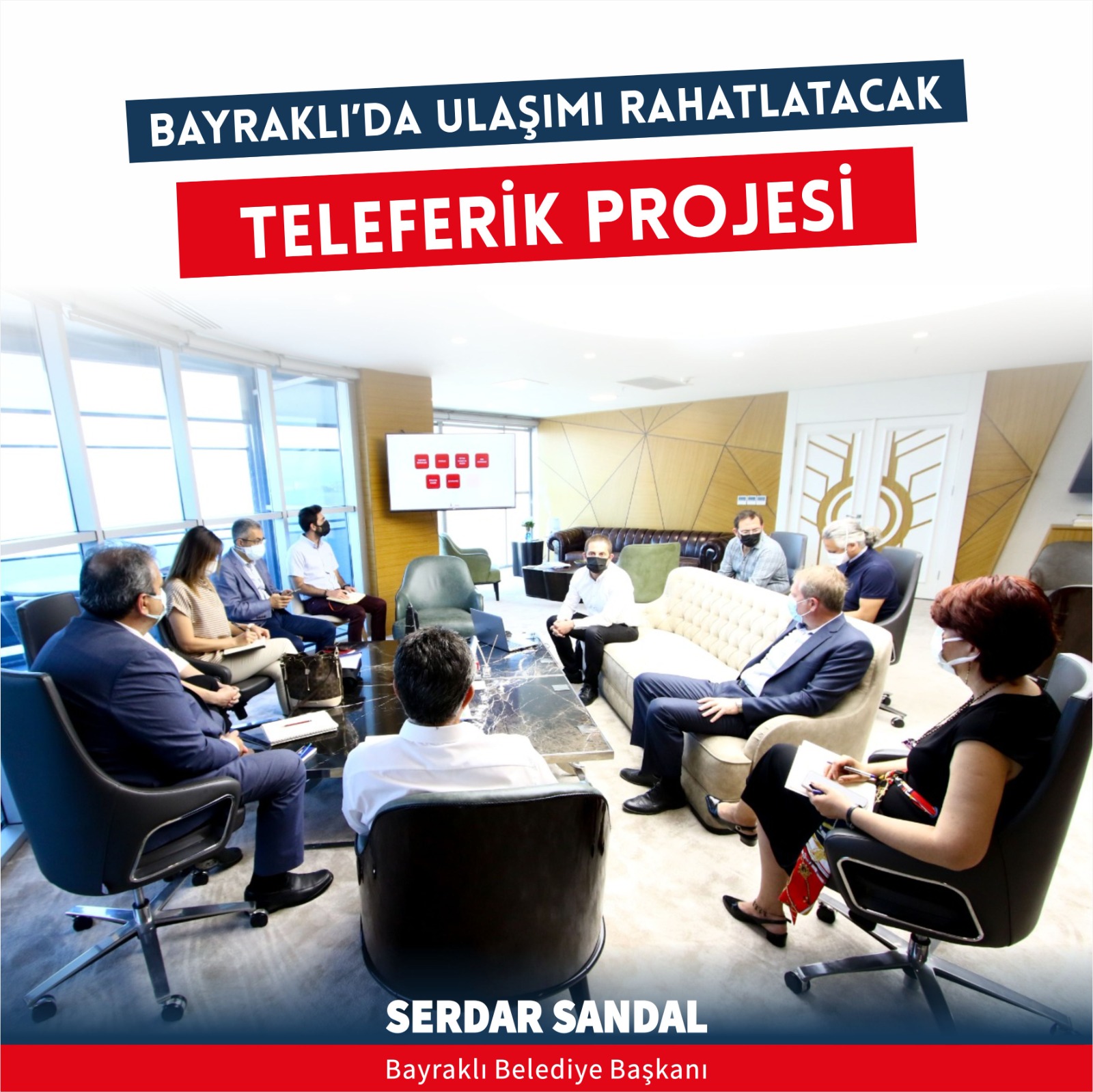 Başkan Sandal sosyal medya hesabından yaptığı açıklamada, "İzmir Büyükşehir Belediyesi Genel Sekreter Yardımcımız Eser Atak, Ulaşım Dairesi Başkanımız Mert Yaygel ve ilçemizde yapılması planlanan teleferik projesi ile ilgili teknik ekibi belediyemizde ağırladık. Bayraklı sahilden Şehir Hastanesi'ne en hızlı ve güvenli ulaşım olanağı için yürütülen çalışmalar konusunda fikir alışverişinde bulunduk. İlçemizin geleceğine yön verecek projelerin hayata geçirilmesinde üzerimize düşeni her zaman yapmaya hazırız" açıklamasını yaptı.