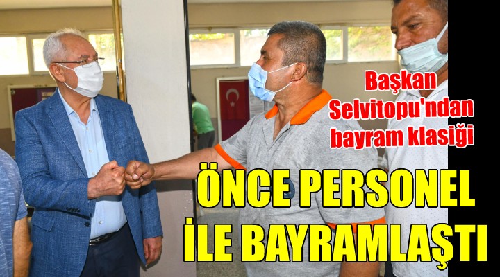 Başkan Selvitopu bayramlaşmaya, kenti temiz tutmak için özellikle pandemi sürecinde yoğun çaba harcayan Temizlik İşleri Müdürlüğü personelinden başladı. Günün erken saatlerinde, mesai öncesi gerçekleştirilen kahvaltıya, Başkan Selvitopu, başkan yardımcıları, Genel İş İzmir 5 Nolu Şube Başkanı Ali Haydar Kara, sendika yöneticileri, KARBEL AŞ. Müdürü Yakup Tendriç ve işçiler katıldı.