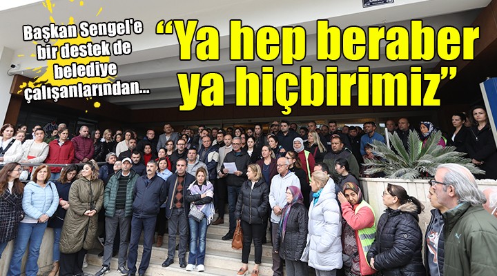 CHP Selçuk ilçe teşkilatının ardından belediye personeli de bugün basın açıklaması yaparak Başkan Sengel'e destek verdi. Belediye binası önünde toplanan ve "Ya hep beraber ya hiçbirimiz" sloganı atan çalışanlar, şu açıklamayı yaptı: