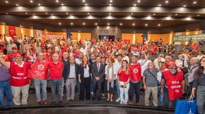 Konuşmasında İzmir sınıf hareketleri açısından ülke genelinde çok özel bir yere sahip olduğunu da ekleyen Çerkezoğlu, “İkinci meşrutiyetin ilanından sonra İzmir sınıf hareketinin önemli merkezi oldu. DİSK’in tarihi açısından da İzmir özel bir yere sahip. Bugün de DİSK'in bayrağı İzmir'deki en yüksekte ve en güçlü biçimde dalgalanmaya devam ediyor. Tüm zorluklara ve baskılara rağmen, emeğimize ve ekmeğimize hep birlikte sahip çıkmaya devam edeceğiz” dedi.