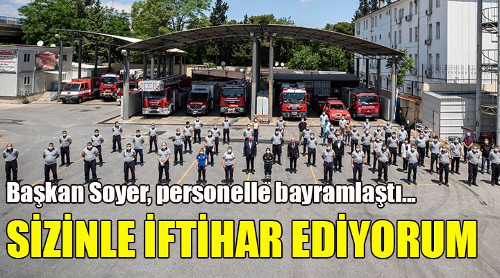 Başkan Tunç Soyer küresel salgın sürecindeki çalışmalarından dolayı tüm personel ile iftihar ettiğini kaydederek şöyle devam etti: “Bu İzmir Büyükşehir Belediyesi ailesinin bir zaferidir. Büyük bir başarısıdır. Ben hepinize ayrı ayrı teşekkür ediyorum. İyi ki varsınız, iyi ki bu kent için ter döküyorsunuz. Ben o nedenle hepinize iyi bayramlar diliyorum. Sağlıkla huzurla, hayat tekrar normalleştiğinde yine işimizde çalışmaya devam edelim. Sizlerle?çalışıyor olmaktan gurur duyuyorum.”