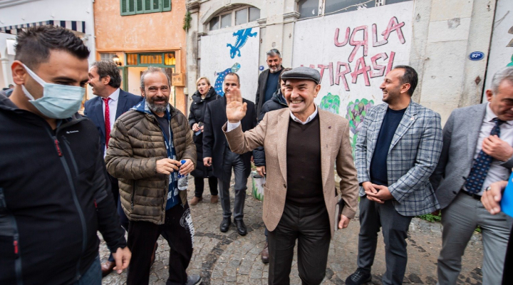 İzmir’in tüm ilçelerinde muhtarlarla bir araya gelerek sorunları tespit eden, proje ve yatırımları yerinde inceleyen İzmir Büyükşehir Belediye Başkanı Tunç Soyer, 2022 yılının ilk ziyaretini Urla’ya yaptı. İzmir Büyükşehir Belediyesi Urla Yerel Hizmetler Binası’nda ilçedeki muhtarlarla buluşan Başkan Tunç Soyer talepleri dinleyip not aldı.